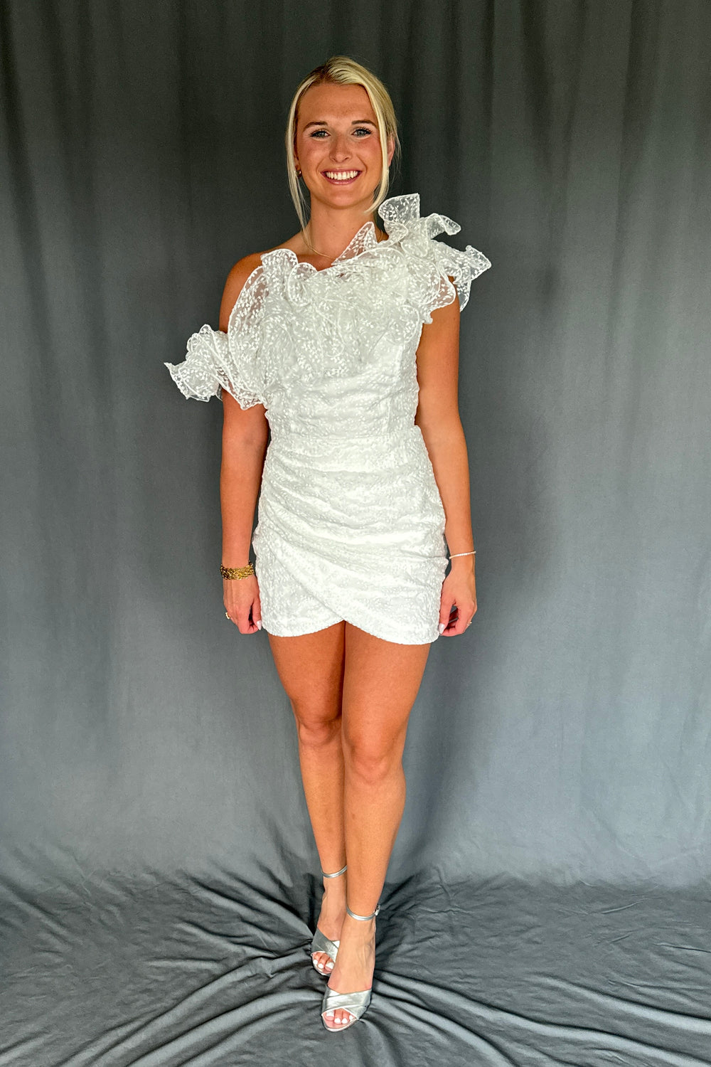 One Shoulder Ruffle Mini Dress